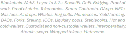 Working in this industry from a communications standpoint has made crypto’s complexity even clearer. The industry is littered with jargon and technical terminology that makes it extremely difficult to understand, and, ultimately, inaccessible to a huge percentage of the population. This creates so many barriers to reaching an external audience of non-crypto natives (without a 10 page glossary or explainer encyclopaedia to go with it).